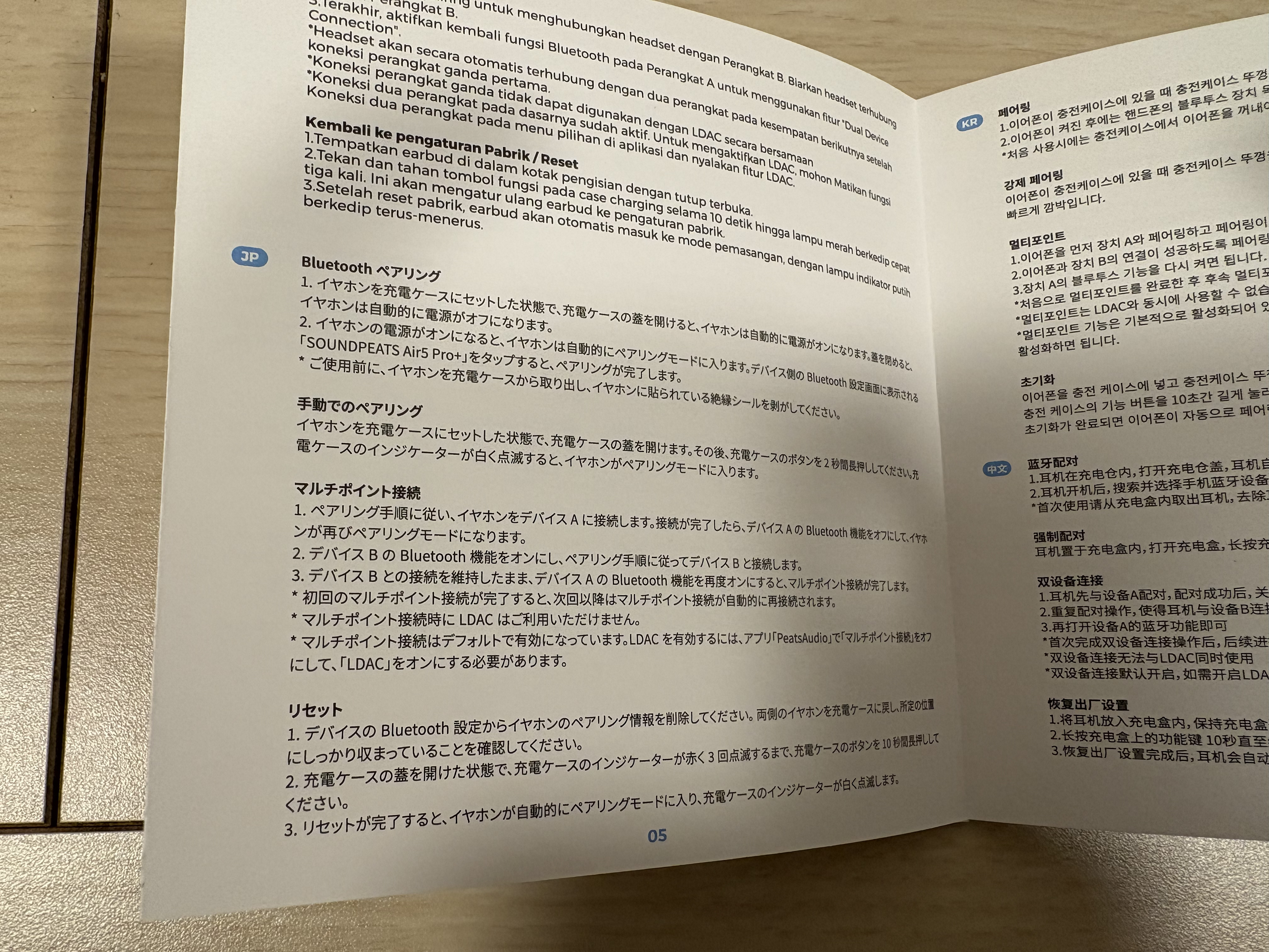 説明書は日本語を含む多言語対応で、ペアリングについても書かれているので使い方に困ることはありません。