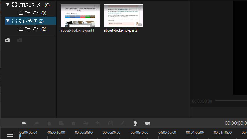 編集したい動画が複数ある場合(例えばつなぎ合わせるなど)、インポート→該当ファイルを指定で複数選びます。